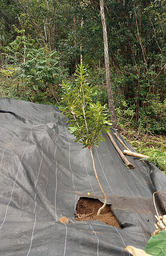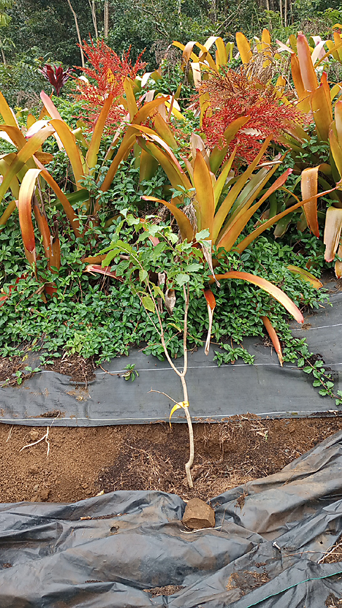 I splerged on a couple new trees. A macadamia nut tree.